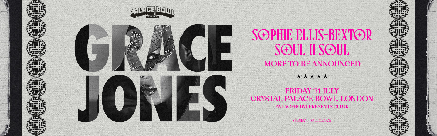 Grace Jones is the latest artist announced to headline Palace Bowl Presents, a brand new festival series in the iconic Crystal Palace Bowl.