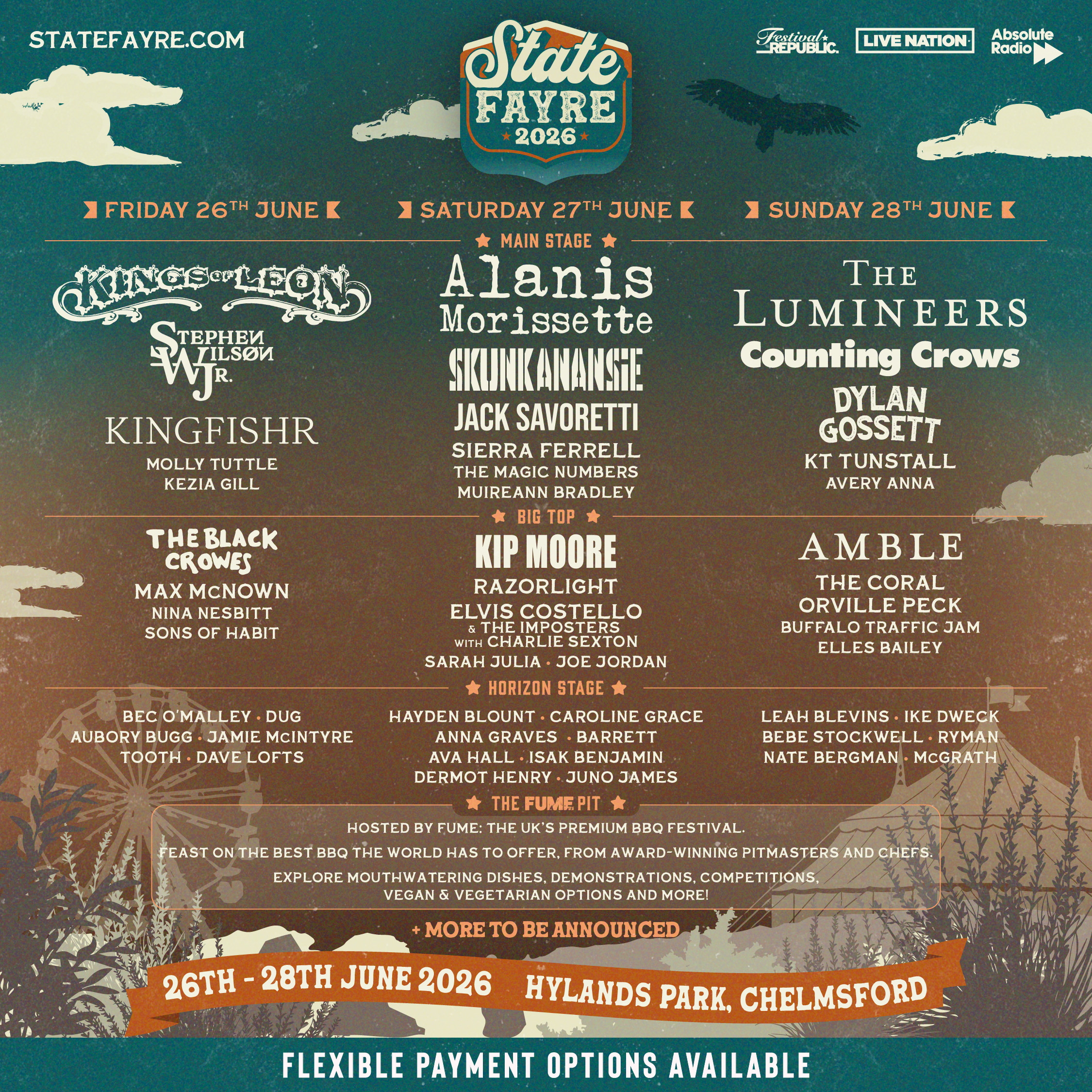 State Fayre will bring a true taste of Americana to the UK in June 2026, with an incredible line-up spanning rock, country, and folk music. Inspired by American state fairs, long summer nights and tailgate parties, State Fayre is a celebration of music, food and culture, blending contemporary and classic sounds with a distinctive American theme, all less than 30 minutes from London.